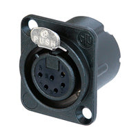 NEUNC6FDLXB - Neutrik DLX Series, Female 6-Pole XLR Chassis Connector. Solder Cups, Black Metal Housing, Gold Contacts