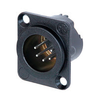 Features & Benefits5-pole Male receptacle, solder cups, Black metal housing, Silver contacts All metal housing offers best overall RF protection and electromagnetic shielding New duplex ground contact for excellent contact integrity between chassis and cable connector Unique cage type female contact on 3 pole version increases conductivity and reduces wear on the mated male contact Female contact incorporates a solder barrier to prevent solder running into the contact mating area Larger solder contacts for easier termination Optional connection to easily join pin1 to chassis ground D-style housing provides installation compatibility with industry standard D mounting dimensions